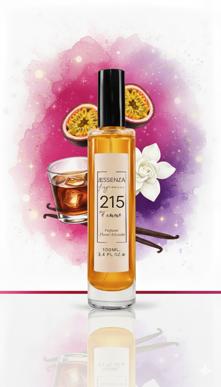 ¿Por qué elegir JESSENZA 215? Es la fragancia ideal para quienes buscan un perfume con carácter que equilibre el dulzor de la vainilla con el toque atrevido del ron. ¡Hazte VIP y destaca con tu propio estilo!