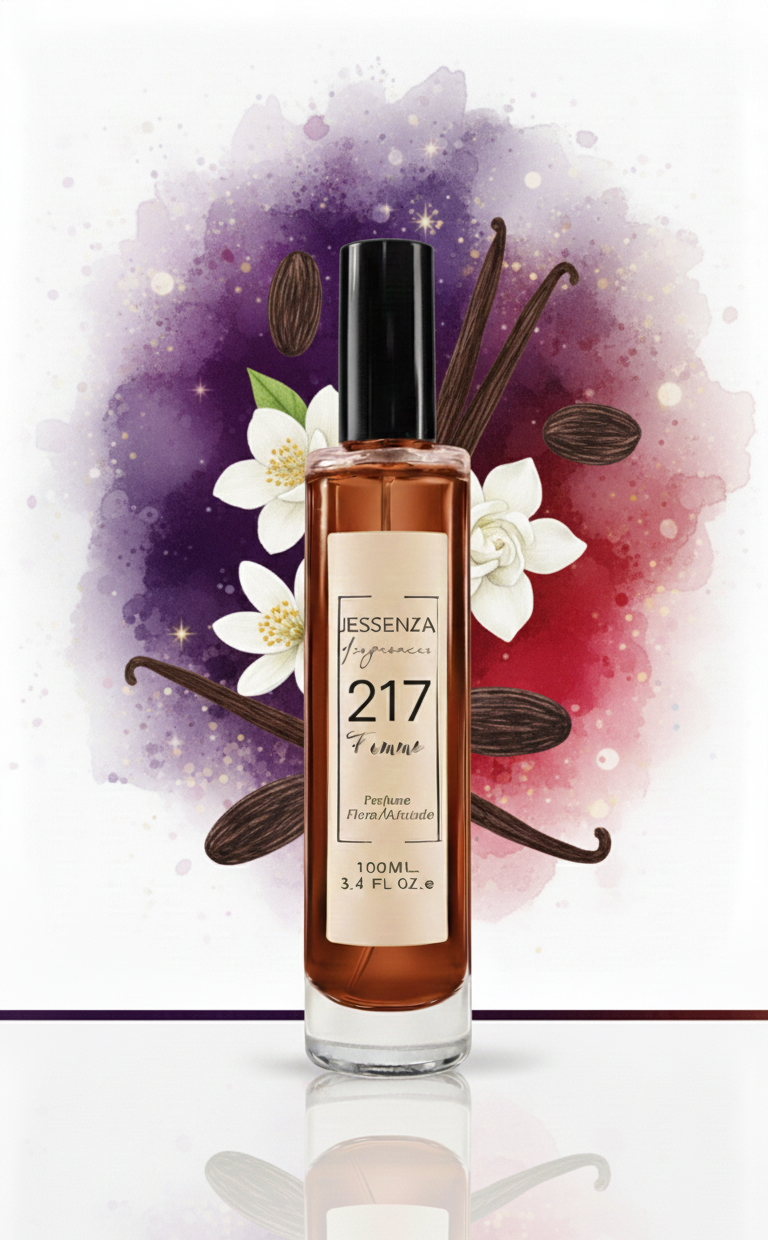 ¿Por qué elegir JESSENZA 217? Si buscas una fragancia que se funda con tu piel y proyecte una feminidad audaz y misteriosa, este «veneno» hipnótico es tu aliado perfecto. Su nota de vainilla realzada garantiza que no pases desapercibida.