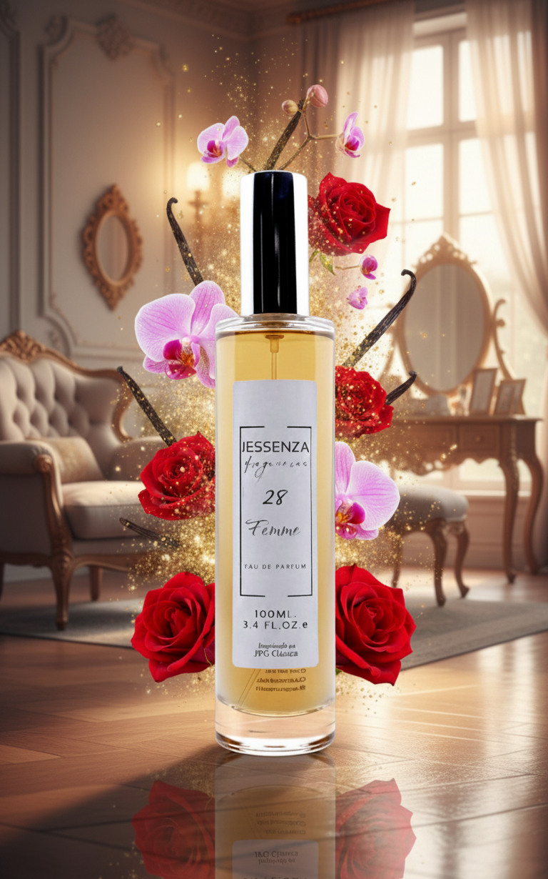 El perfume JESSENZA 28 es una fragancia hechizante y voluptuosa, el perfume de una femme fatale sofisticada con un poder de seducción absoluto. Es un símbolo de sensualidad extrema, con contrastes cautivadores: carnal y embriagante. La orquídea habla de deseos, equilibrada por la delicadeza del absoluto de vainilla. Desata tu estilo único y sofisticado con esta icónica fragancia. Sumérgete en una experiencia olfativa incomparable que te envuelve en un aura de elegancia y sensualidad. 🌟