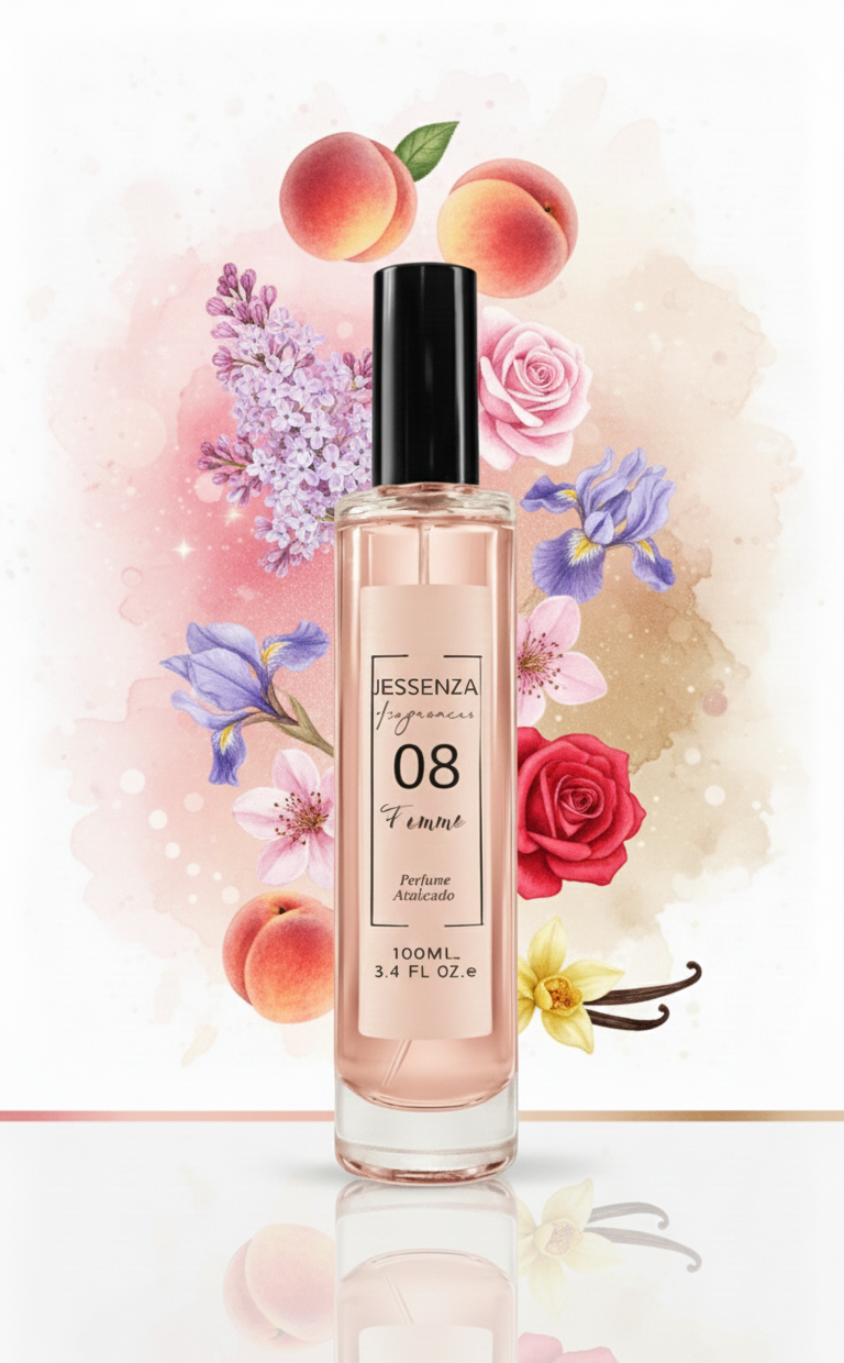 Inspirado en el legendario Tresor de Lancôme, JESSENZA 08 destaca por su carácter frutal y atalcado, creando una presencia sutil pero absolutamente inolvidable. Es la elección ideal para la mujer segura de sí misma que desea destacar con un encanto atemporal y un toque de misterio. ✨💖🌹