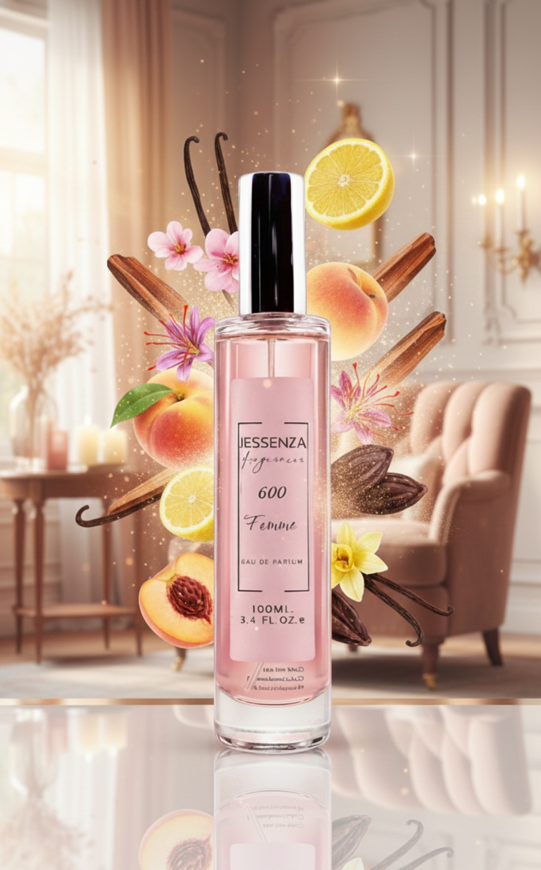 El perfume JESSENZA 600 es una fragancia femenina, cálida y seductora, que combina notas frutales y florales con una base envolvente. Su mezcla irresistible de frescura afrutada, flores exóticas y un fondo cálido de cacao y vainilla deja una estela cautivadora y profunda. Es una fragancia que combina frescura y calidez con un toque de sofisticación, perfecta para momentos especiales. ¡Hazla tuya y deja que tu presencia hable por ti! ✨