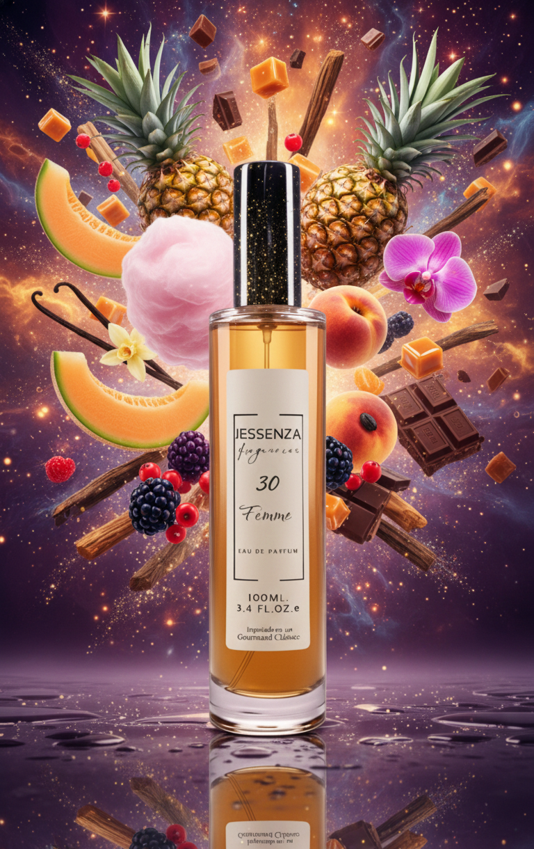 El perfume JESSENZA 30 es un verdadero torbellino de deseos, ofreciendo a la mujer el camino para alcanzar sus sueños. Es la estrella que guía en ese trayecto, aportando fuerza y emoción. Esta fragancia intensamente golosa (gourmand) es una combinación única de notas dulces, frutales y especiadas. Déjate seducir por el encanto celestial de este aroma que despertará tus sentidos. ¡Conviértete en el centro de atención con este perfume de Intensidad Fuerte que te llevará a las alturas! 👼🌟
